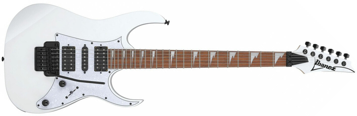 IBANEZ Standard RG450DXB WH solid body electric guitar, Meranti body, bolt-on Maple neck, Jatoba fretboard, 24 frets, Ibanez Quantum HSH pickups, Ibanez Edge-Zero II double-locking tremolo.