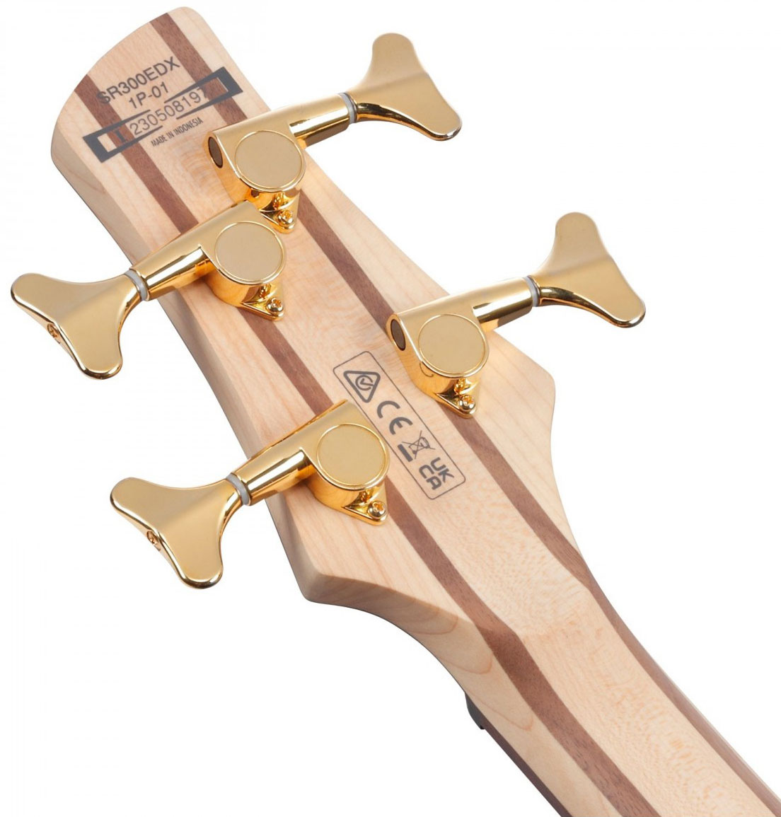The IBANEZ Standard SR300EDX BZM solid body electric bass, with Nyatoh body, bolt-on five pieces Maple/Walnut neck, 24 frets Jatoba neck and active preamp is a confortable, ergonomic and versatile instrument.