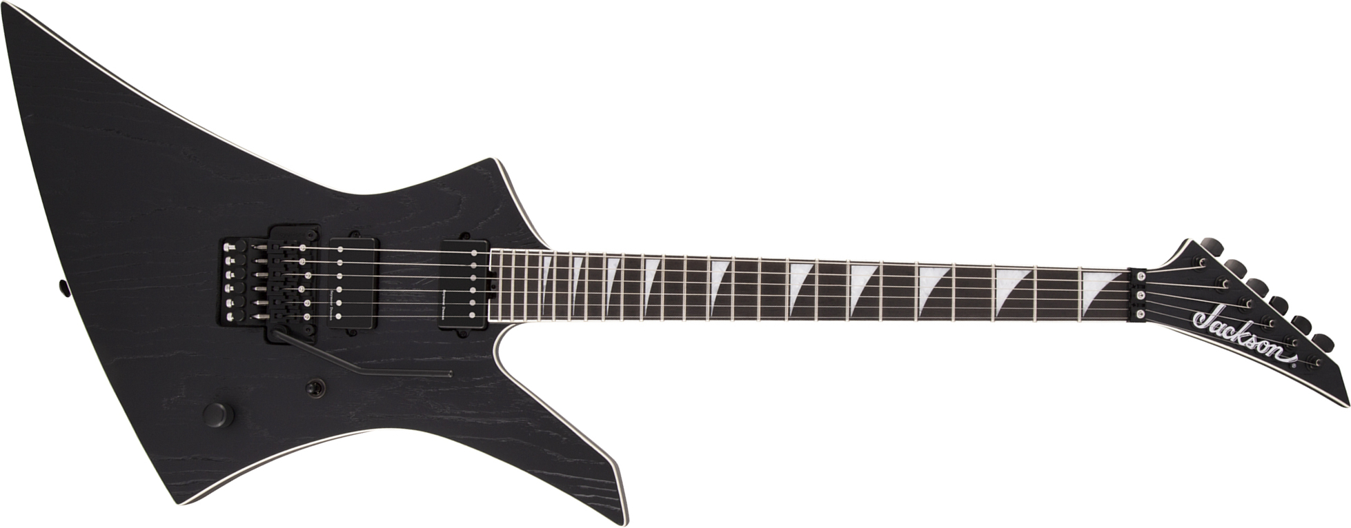 This metal behemoth’s other premium features include a single volume control, three-way toggle switch, Floyd Rose® 1500 Series double-locking tremolo bridge system, heel-mount truss rod adjustment wheel, Jackson die-cast tuners, Jackson’s famed pointy tilt-back headstock and black hardware.