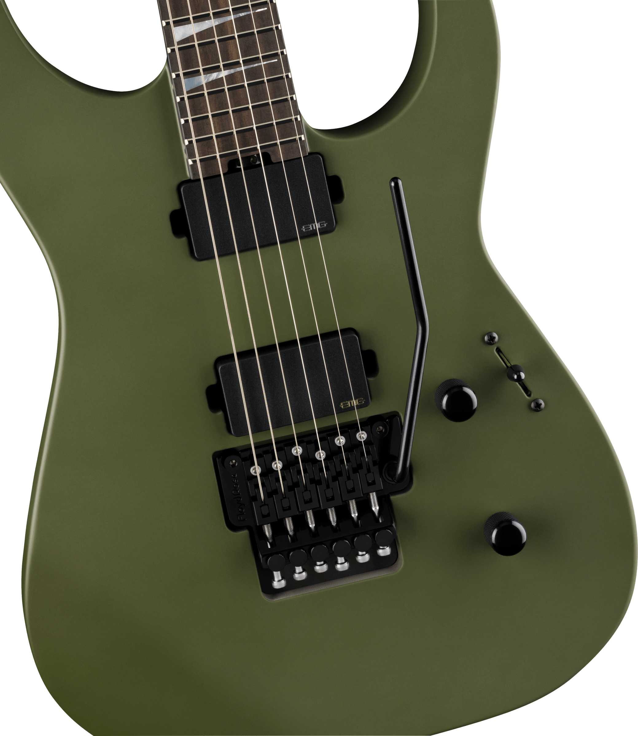 Jackson, born in 1980 in Southern California, revolutionized instruments for hard rock and metal virtuosos. The American Series Soloist SL2MG, crafted in Corona, sets new standards with its alder body, through-body maple neck, and 24 jumbo stainless steel frets on a compound radius rolled ebony fingerboard. Powered by EMG 81 and 85 pickups, it delivers commanding punch with enhanced note definition, crucial for modern metal. Finished in Satin Black, Satin Lambo Orange, or Matte Army Drab, it embodies Jackson's iconic metal style.