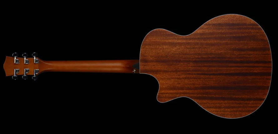 Its solid A+ Sitka Spruce top benefits from a roasting process which improves overall tone of the wood (clearer and richer), increases sustain, and optimizes stability and intonation.