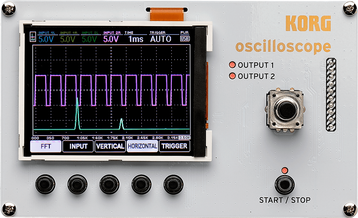 - Modes: Oscilloscope, FFT (Spectrum Analyzer), Tuner, Waveform Generator (sine, square, triangle, sawtooth, etc...) which can serve as an LFO.