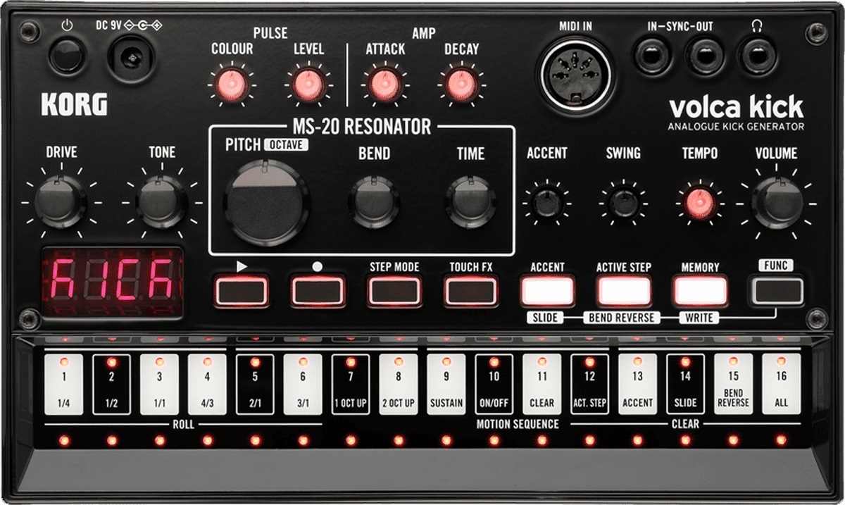 The Korg Volca kick is a kick generator that produces powerfully present kick sounds using a completely analog circuit. To create those sounds, it uses not a typical sine wave, but the sound of an oscillating filter from the original MS-20. This filter used to produce powerful kick sounds with complex overtones.