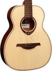 With its included gig bag, LAG Sauvage D Dreadnought is an environmentally responsible acoustic guitar featuring solid Pale BrankoWood top, Eucalyptus back/sides, Khaya neck and Brown BrankoWood fretboard.