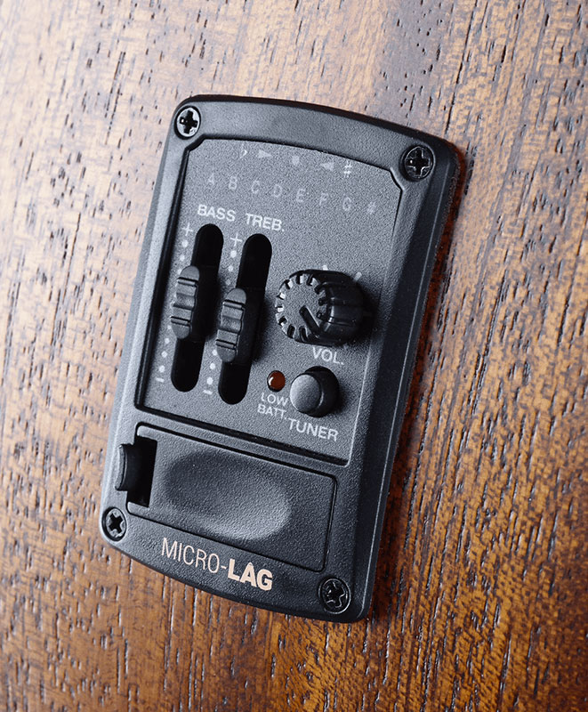 With its included gig bag, LAG Tramontane Travel Escapade RCE Nylon is a small body / short-scale acoustic/electric classical guitar featuring solid Red Cedar top, Khaya back/sides/neck, Brownwood fretboard and Micro-Lâg system.