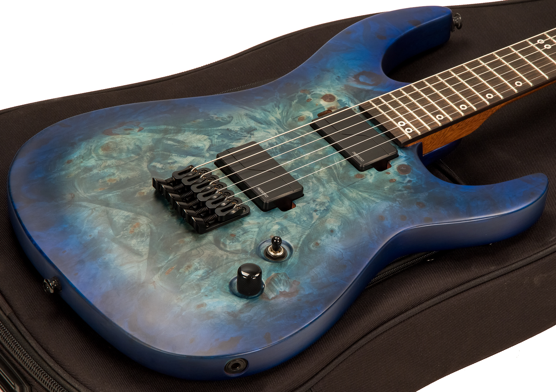 LEGATOR Ninja N6X (AIR) solid body electric guitar is a genuine riffing machine for modern shredders. Huge sounds thanks to its hybrid design (Mahogany body, Maple Buckeye Burl top, bolt-on Wenge/Maple neck, 25.5" scale, 24 frets Ebony fingerboard, active Fishman Fluence Modern pickups), and optimum confort with an Ibanez neck shape under Ibanez influence.