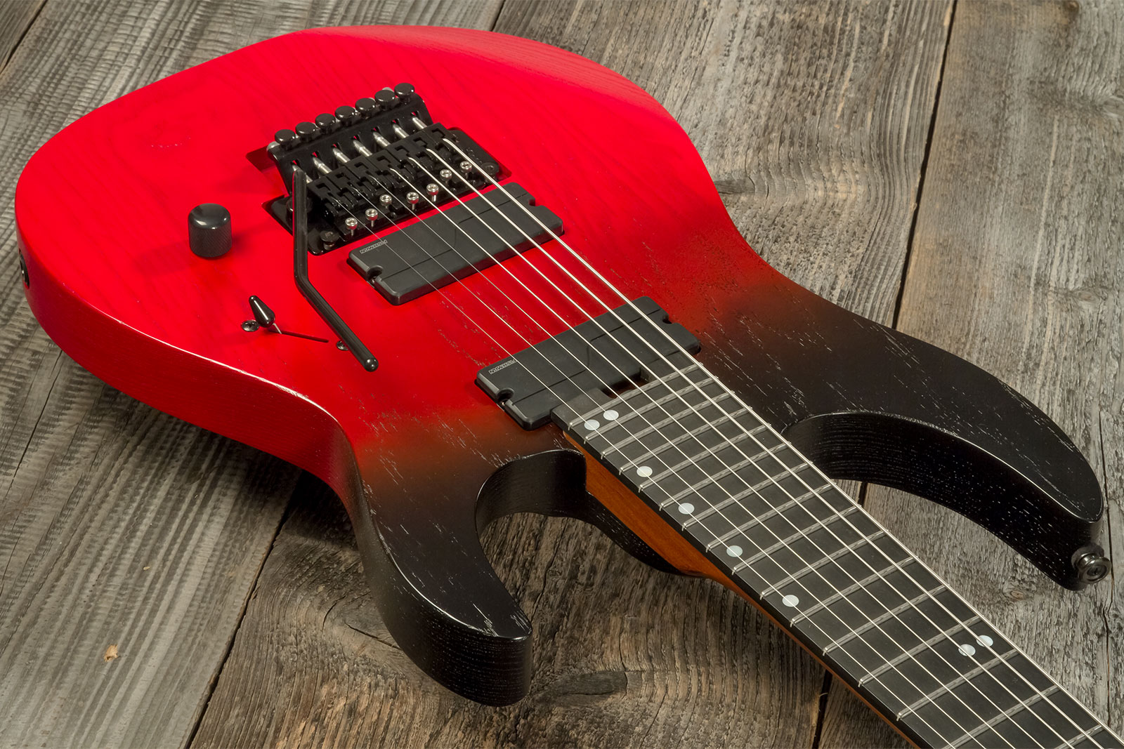 This baritone / 7-string delivers huge sounds thanks to its hybrid design (Ash body, bolt-on Maple neck, 27" scale, 24 frets Ebony fingerboard) and Fishman Fluence Modern humbucking pickups.