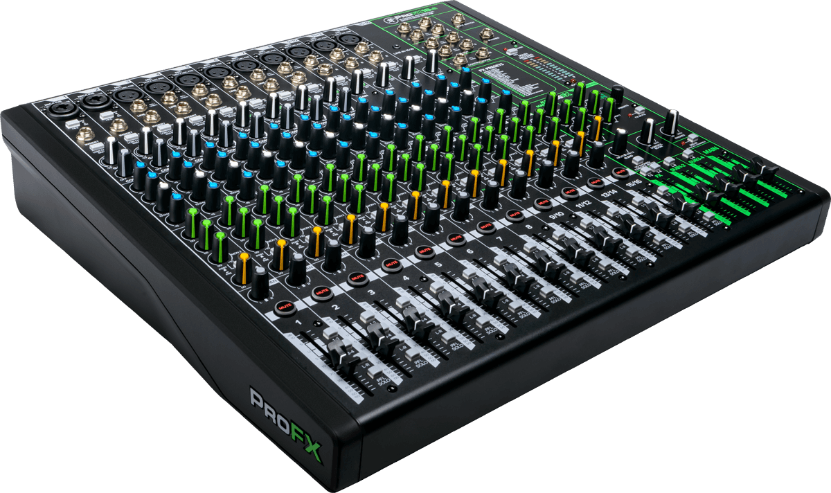 The Profx16v3 mackie is a 16 channel analog mixing console.