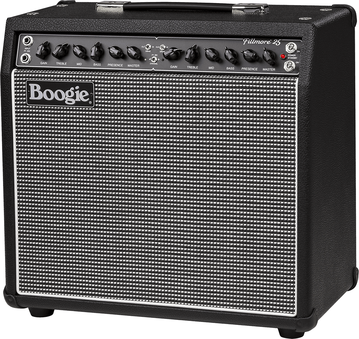 Introducing the MESA Boogie Fillmore 25. Joining the award-winning Fillmore 50, the new Fillmore 25 shows up to claim the bantam-weight class with a compact 6V6 format. Authentic traditional tones abound in this new Fillmore’s popular power range, from clipped cleans, to a purring grind, all joined by the preamp’s higher gain realm delivering blistering tube overdrive like only a MESA can. The 25 also features tube-driven spring reverb that provides some of our lushest, richest reverb to date. Experience the 50's circuit, soul and clip-ability coupled seamlessly with the realm beyond where traditional amp evolution tapped-out in the twilight of the 60s with the new Fillmore 25. Finally, you can have the original Boogie-sized footprint, preamp flexibility to cover any style, and Traditional, old-school dress in the perfect power range! …Tone for days that brings back The Years!