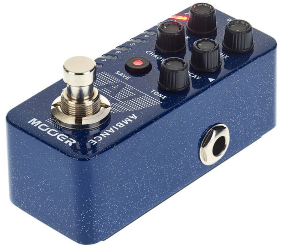 MOOER Micro Series A7 Ambience effect pedal is a programmable digital reverb. It is based on MOOER unique algorithm of reverb, housing up to 7 different types of typical reverb effects storable on 7 presets.