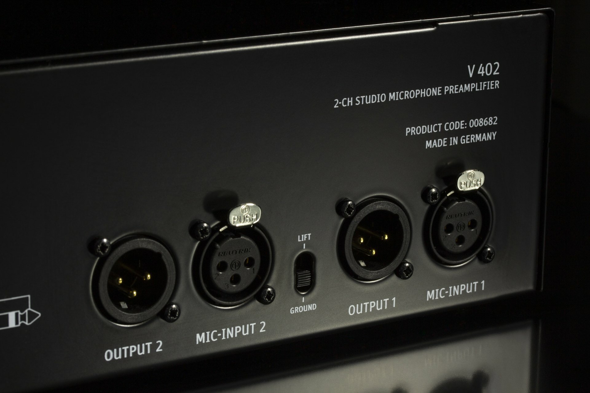 The V 402 is optimized to guarantee a high degree of linearity and sonic purity. It amplifies the microphone signal without introducing unwanted coloration or artifacts, such as noise and distortion. In an age where many inexpensive preamps advertise themselves as “linear” and “neutral,” they often lack finesse and detail; the output signal can sound “dull” and “lifeless,” especially at high gain levels. Meticulous engineering, rigorous measurements, and extensive listening tests were required to create a preamplifier worthy of Neumann’s reputation. The V 402 preserves every detail of the original signal, revealing its true nuances.