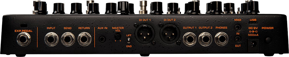 - Inputs: Expression Pedal, Instrument Jack, Aux-In