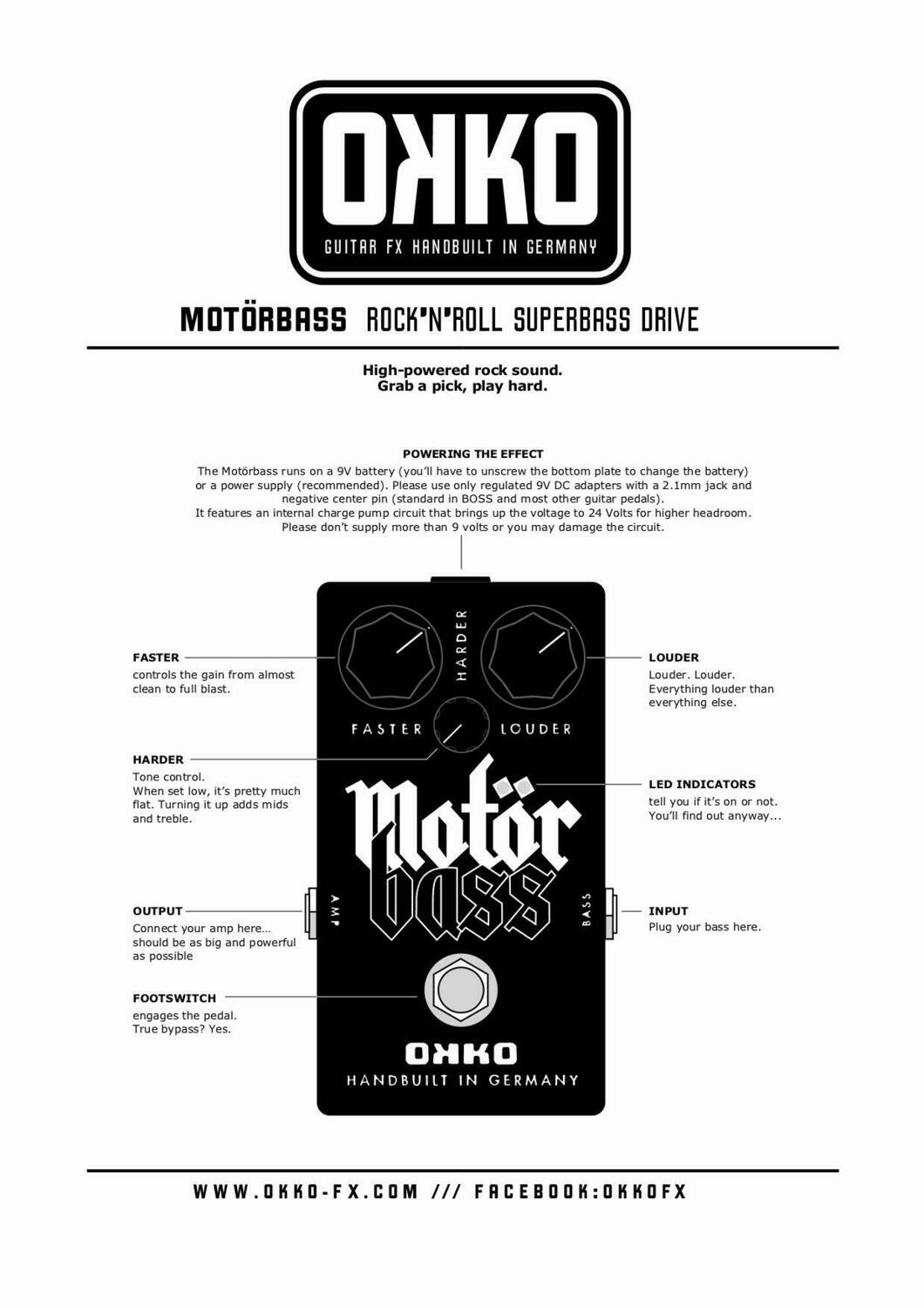 In memory of one of the (if not THE) last true rock’n’roll icons, her's the OKKO Motörbass Distortion compact effect pedal. You’re all familiar with Lemmy’s signature sound – ultra powered rumbling grind, distorted, slightly fuzzy with a lot of edge and definition for high speed hammering powerchords.