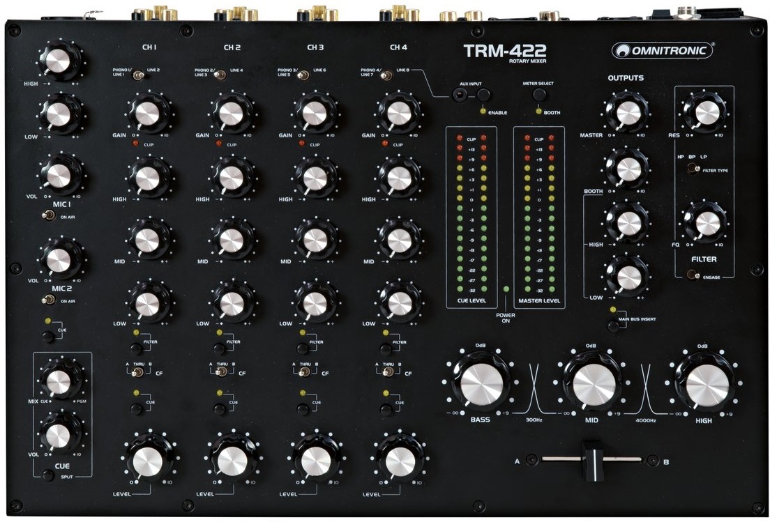 The Omnitronic TRM 422 is a 4-channel DJ mixer.