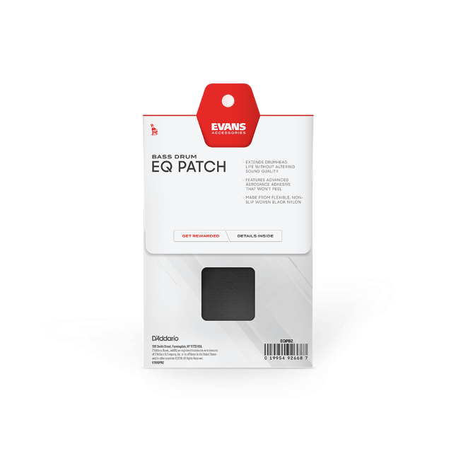 The EVANS EQPB2 double bass drum pedal patch is made of flexible, non-slip black nylon to dampen the attack and reinforce the drum head without affecting sound quality.