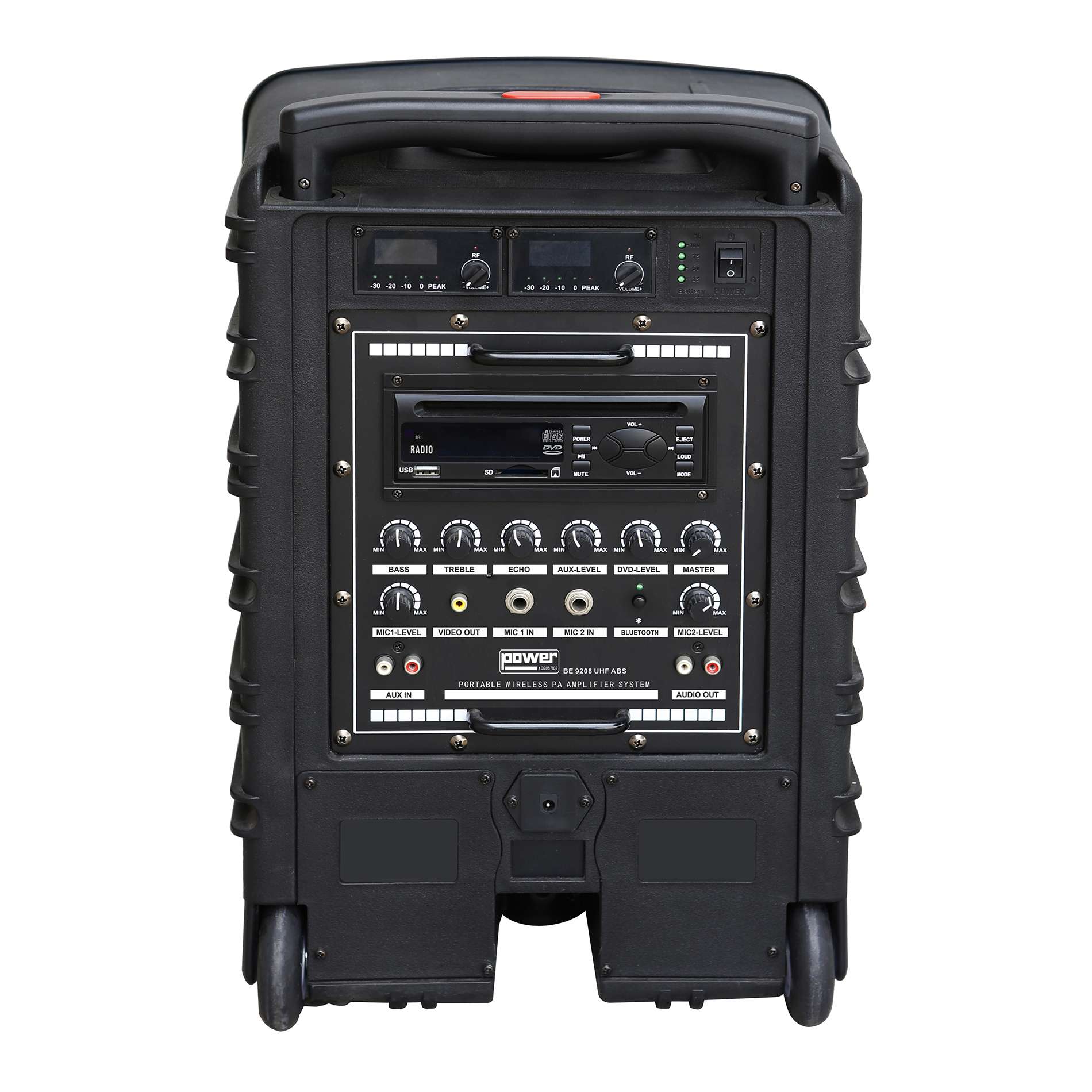 the Be 9208 UHF ABS is a portable CD MP3 + USB + Bluetooth + DIVX + 2 Handheld UHF Microphones.