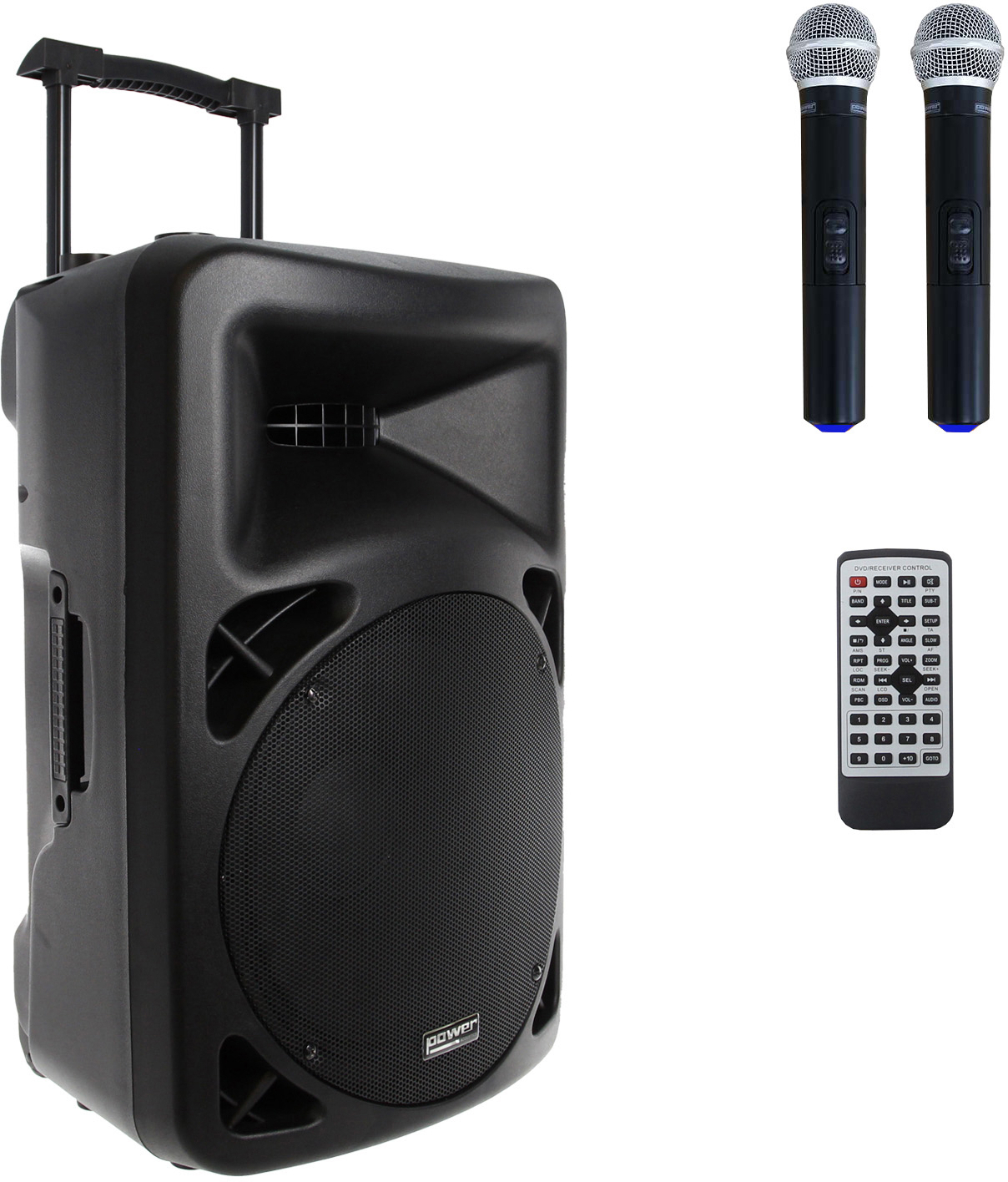 MP3/SD/USB/DIVX/Bluetooth CD player + 2 UHF handheld microphones.