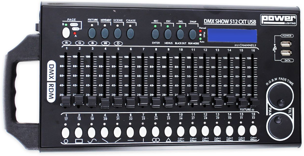 The Power Lighting DMX SHOW 512 CXT USB is a 512 channel DMX Console.