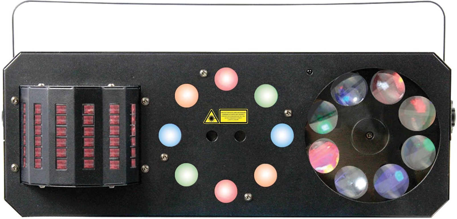 The Meteor VI is a 4-in-1 light games: Derby, Wash, Gobos Moonflower, Red and Green Multipoint Laser.1