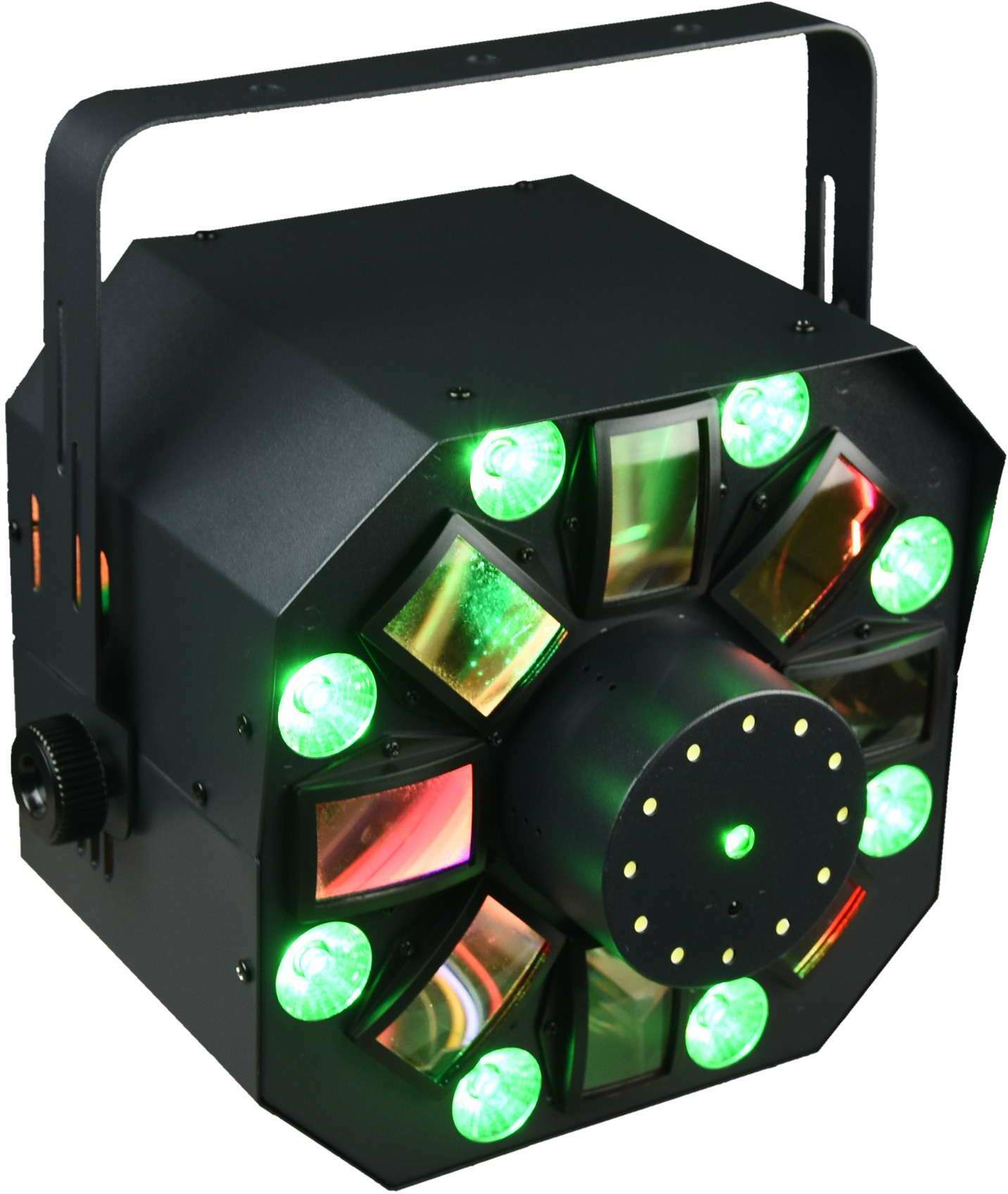 The Meteor VIII is a 4-in-1 light show: Multi-Beams, Wash, Strobe, Red and Green Multipoint Laser.