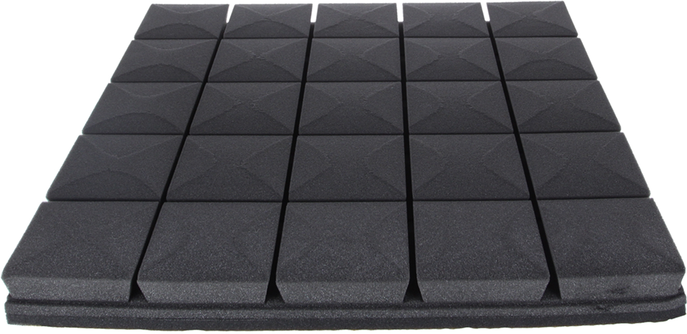 Dark grey acoustic foams with adhesive for quick and easy installation (sold by 10). Acoustic foam for Studio or Home-studio. Allows you to obtain better acoustics during sound recording.