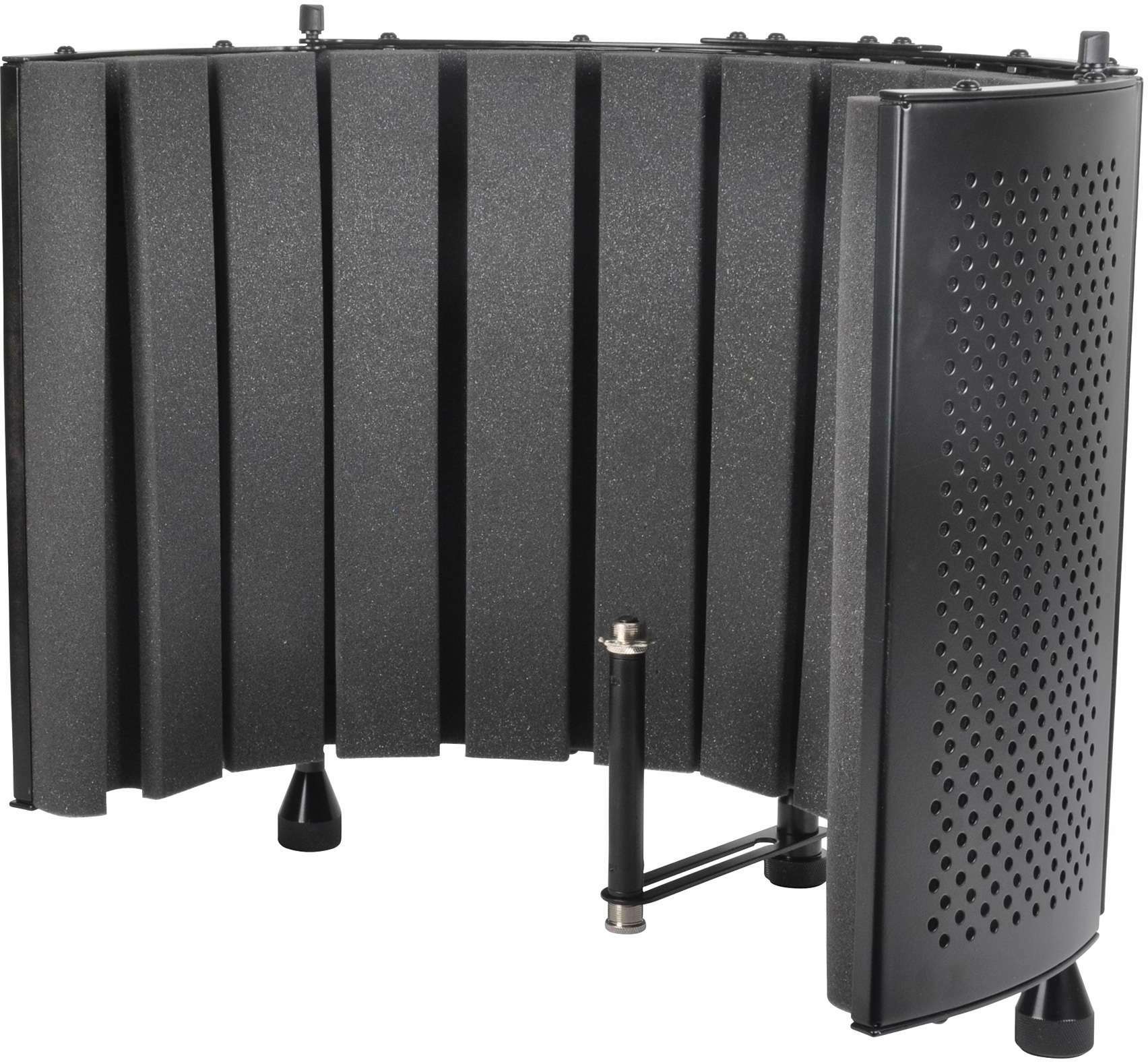 The PF 80 is a latest generation noise filter using a very innovative and neat design. The acoustic treatment is ensured by a high quality foam (as on the PF32) combined with fiber plates ensuring an optimum rendering. The curved panels are aluminum and ensures a light weight. It can be easily attached to the PF32 Stand, a microphone stand or a standard speaker stand.