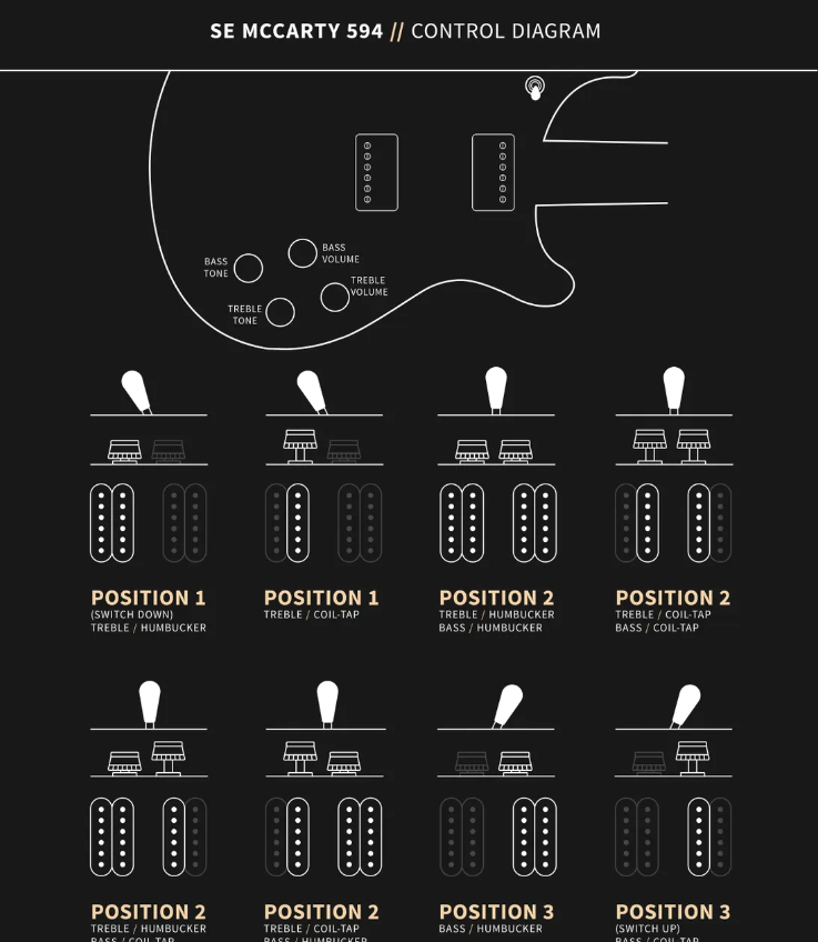 - Tone for each pickup with Push/Pull (coil split)
