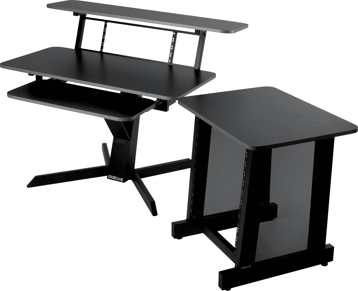 Quik Lok has a range of products for studio furniture. The "Z" range, in addition to having a modern and elegant design, has an ergonomic design for maximum comfort and efficiency. Its robust steel structure is suitable for heavy loads so you will have no problem placing your master keyboard/synth, plus your speakers, plus a screen and audio devices on it!