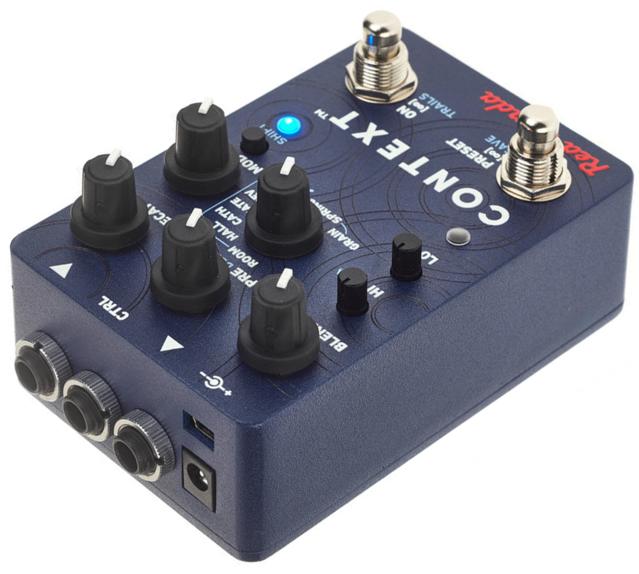 The RED PANDA Context 2 compact effect pedalis a reverb pedal inspired by 1980’s rack mount reverbs. It has 8 algorithms, including room, hall, cathedral, gated reverb, reverse reverb, plate, spring, and a granular reverb. Version 2 adds stereo input/output, USB MIDI, fully assignable expression pedal, 3 new modes, delay plus reverb in all modes, separate high and low frequency damping controls, modulation, dynamic reverb, and infinite hold.