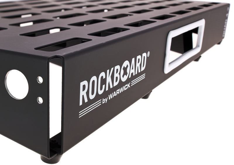Added and improved features include an extended slot grid for perfect fit of our new optional QuickMount plates, added mounting positions for the Optional RockBoard® The Tray - Universal Power Supply Mounting Solution (QUAD 4.2, CINQUE 5.2, 5.3 and 5.4), second MOD mounting slots for RockBoard® CINQUE 5.3 and 5.4, lighter ABS pedalboard cases and improve pedalboard bags.