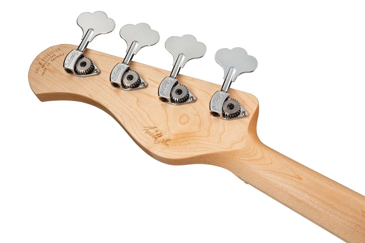 The 4-string version features a sleek undersized J-Style swamp ash body, a J/J pickup configuration, active electronics with true bypass, a custom made preamp according to the specifications of Will Lee with added mid-boost (500 and 800 Hz) to get more punch, Vintage Tone Control, treble and bass boost, ultralight Hipshot tuners and the special Sadowsky bridge for quick string release. The neck with a smaller profile is fitted with a maple fingerboard. This artist model is made exclusively in Germany. All basses are lightweighted with approximately 8.4 pounds. A good choice for bass players who are looking for a lightweight solution for the stage in addition to a modern bass sound.