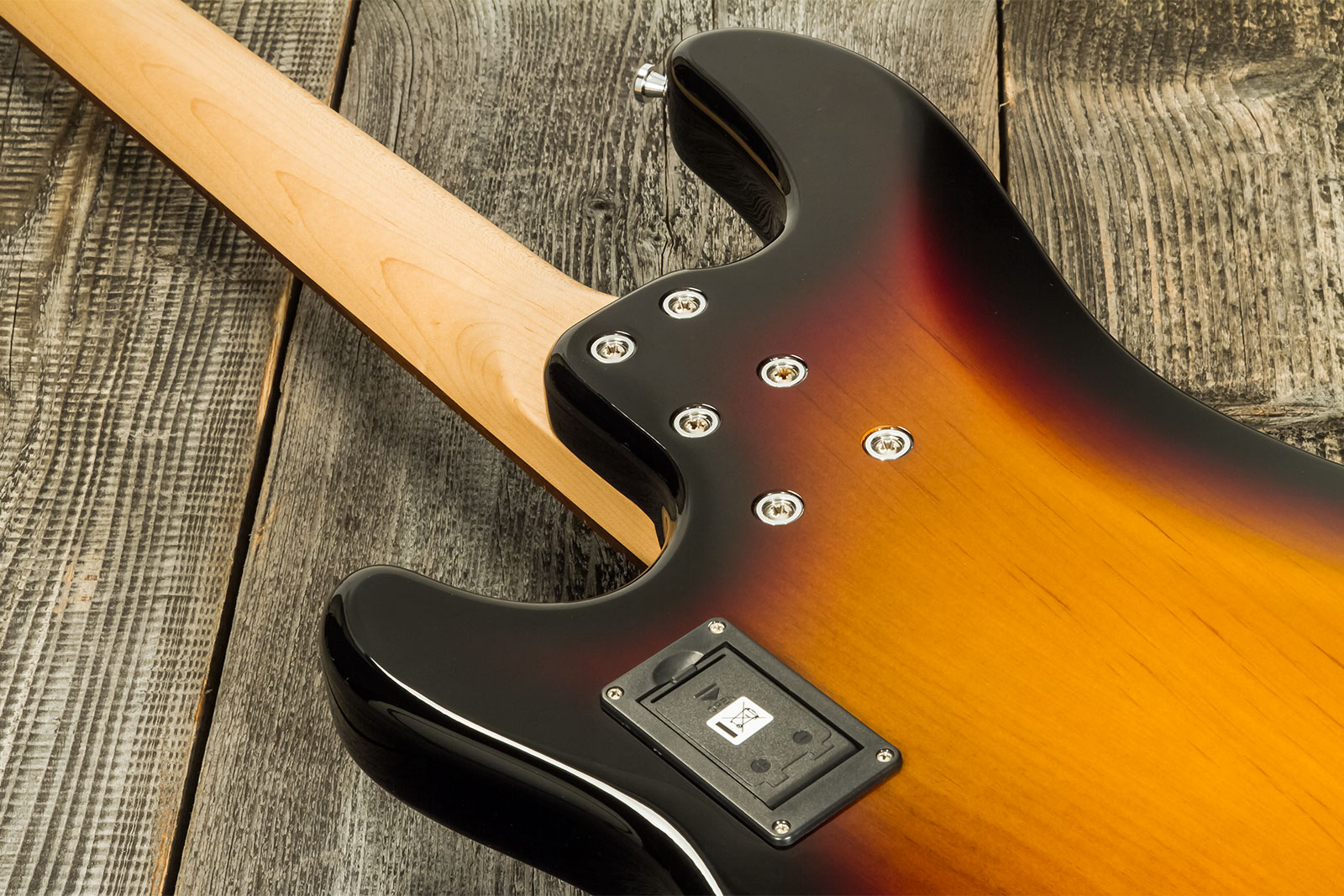 - Solid body electric bass with active/passive electronics