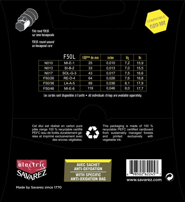Focus strings offer a perfect balance between treble and bass, increased longevity as well as excellent stability and chord hold, even during sustained use of the “Floyd Rose” vibrato.