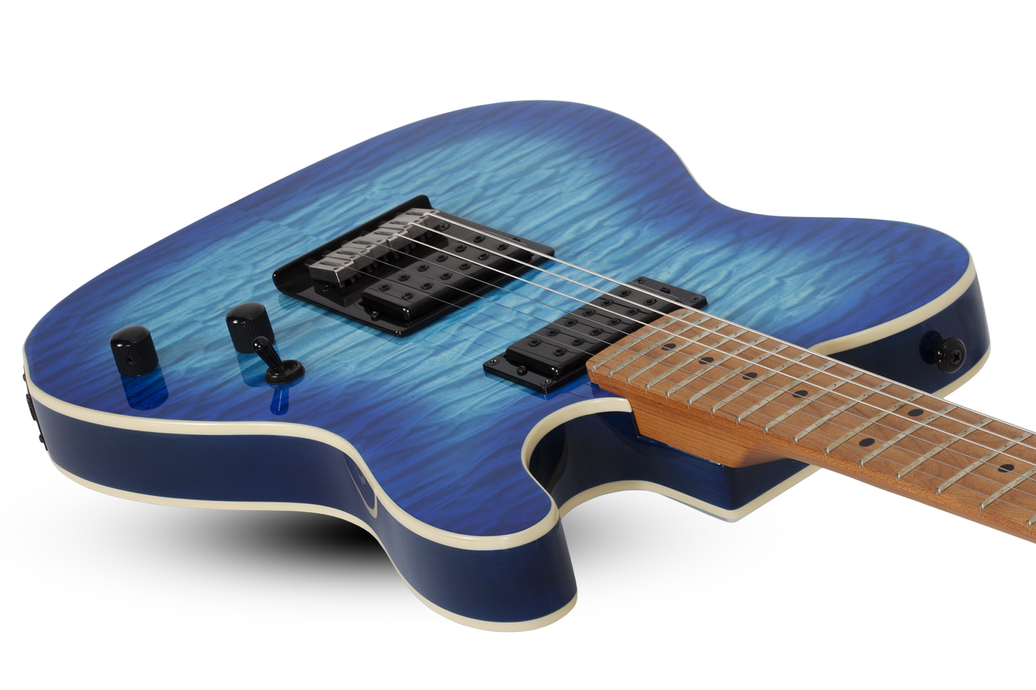 The SCHECTER PT Pro (864) is a tremendous solid body electric guitar, merging traditional construction (Alder body, bolt-on roasted Maple neck and fretboard, 22-frets), huge sounding pickups (Schecter USA Z-Plus humbuckers), that will fit most kinds of Hard-Rock and Heavy-Metal styles.