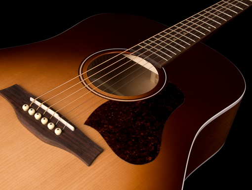 The traditional dreadnought shape is perfect to help your playing project over campfire sing-alongs or cut through any given acoustic situation.