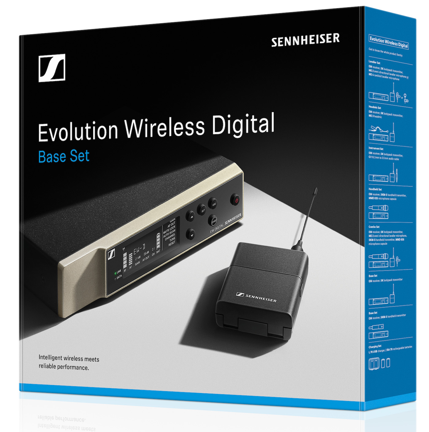 The Sennheiser EW-D Sk base Set (R1-6) is a wireless transmitter and receiver system.