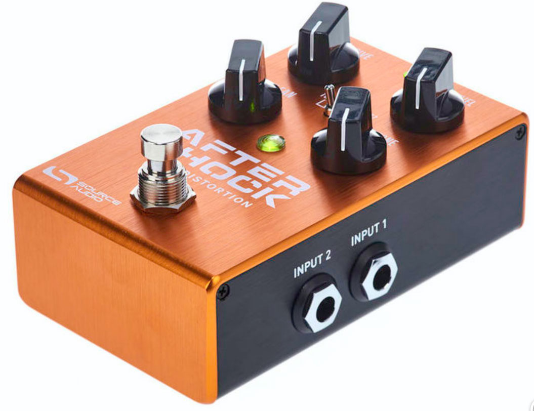 SOURCE AUDIO One Series Aftershock Bass Distortion is a stereo pedal delivers three bass overdrive engines that span the gamut of low-end crunch, from smooth and natural overdrive to full-on fuzz attack.