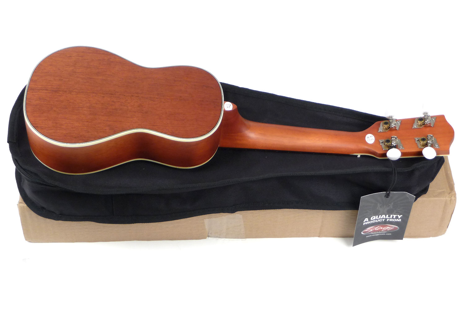 - Traditional soprano Ukulele w/ solid Mahogany-A top, in black nylon gigbag