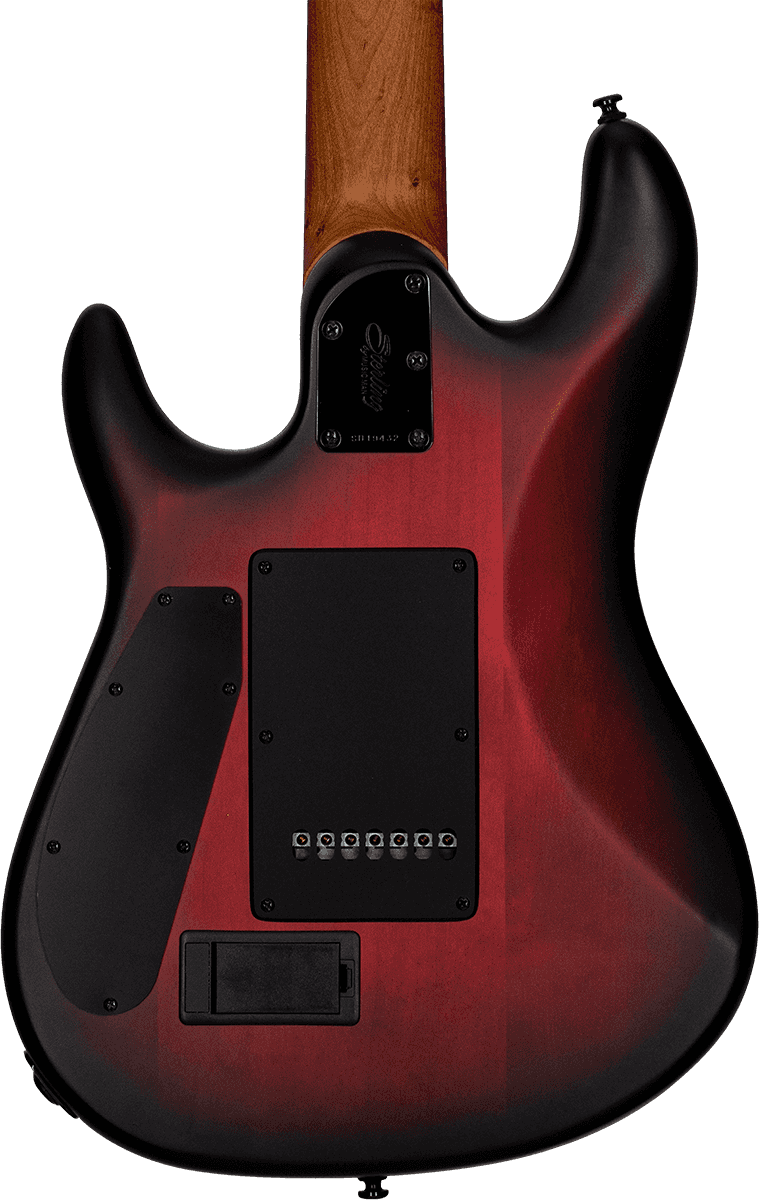 The ‘Richardson7’ features a custom contoured lower horn for fret access, roasted maple neck with rosewood fretboard, and highly figured Poplar Burl top. It offers high output Sterling by Music Man designed humbuckers, a 12dB “PushPush” volume boost, coil-tap “Push-Push” tone control, and Modern Tremolo.