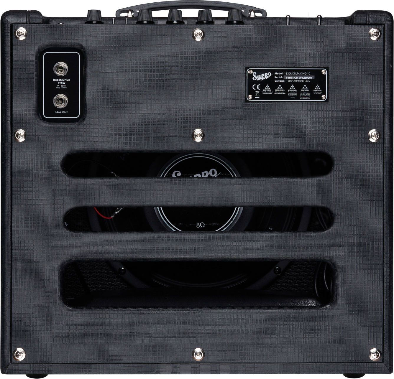 The SUPRO Delta King 10 (1820RBB) combo for electric guitar captures the authentic 6V6-powered tube-amp tone of the Chicago-made Supro combos from the 1950s.