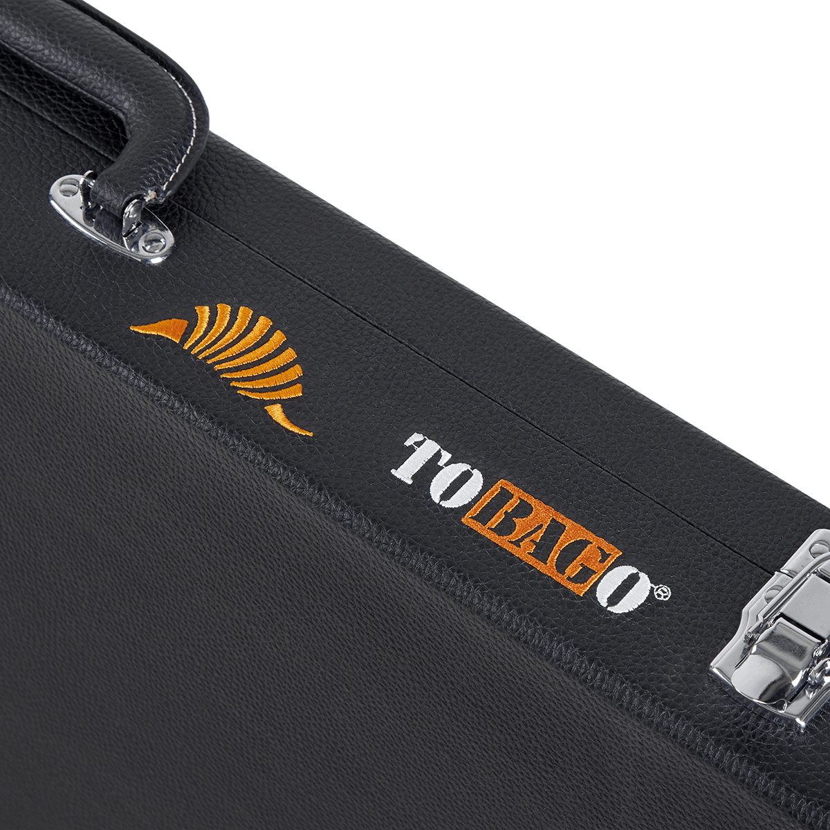 The side band of the case, next to the side handle, features the elegant Tobago and Armadillo logos. The metal latch closure with lock provides additional protection against unauthorized access, ensuring the safety of your instrument.