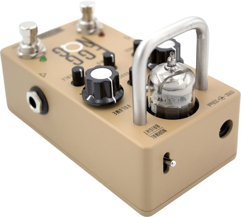 The Eggnog is a single-channel tube overdrive and preamp pedal going back to the small, yellow-patterned combination amplifiers made in Fullerton in the 1950s. Based around a 12AX7 tube running at high voltage (250VDC) to accurately capture a low-powered Tweed's feel and breakup characteristics, the overtly American preamp circuitry can transform any clean amplifier into a raspy box of vintage tweed goodness.