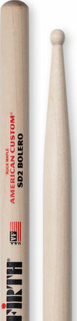Drum stick VIC FIRTH Baguettes american custom sd2 - bolero. Round tip. Ideal for light orchestral and pit playing.