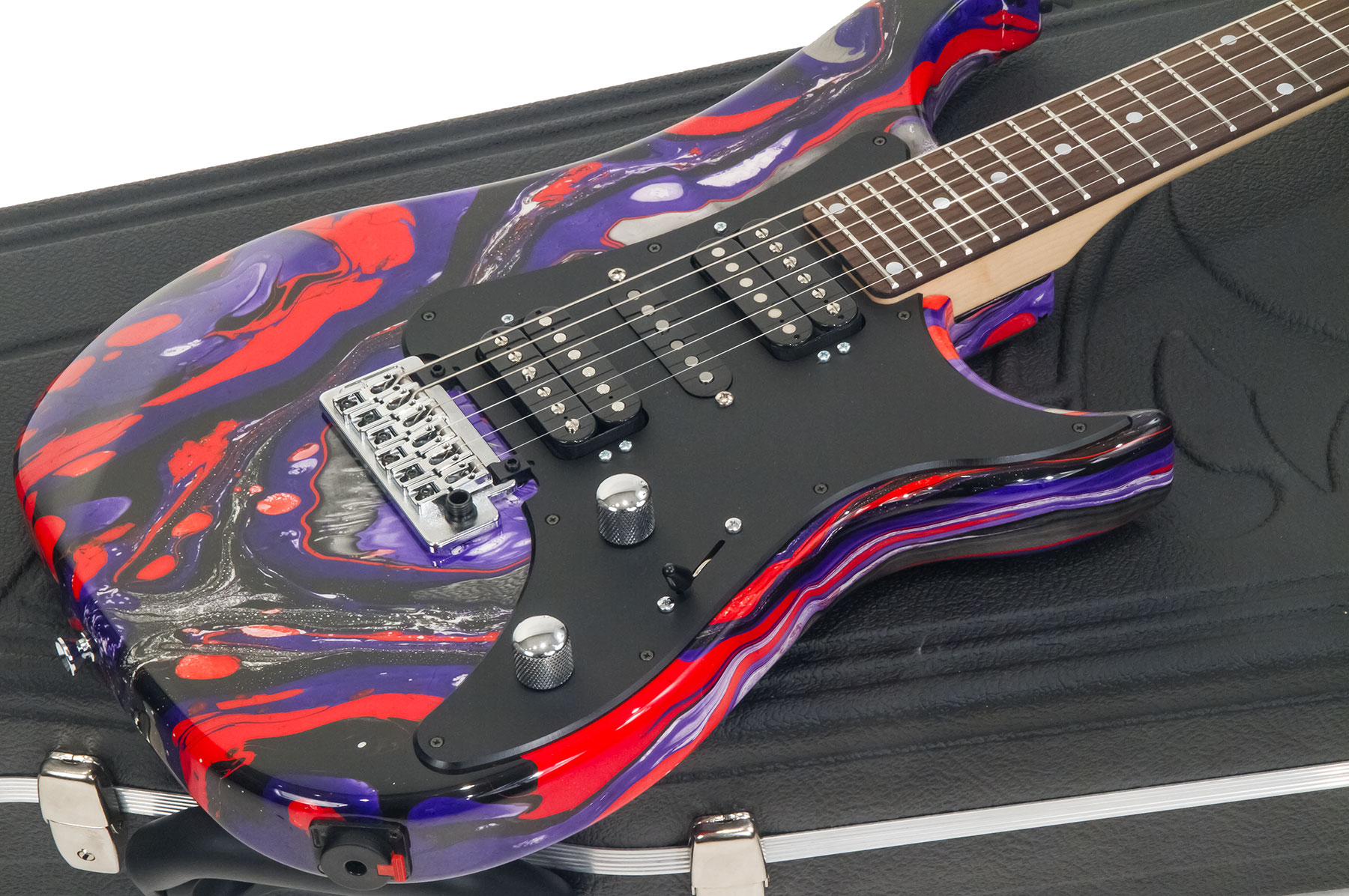 Inspired by an american classic and adorned in a special swirl finish unique for each instrument, the VIGIER Excalibur SupraA (VIG-VE6-CVS1A-RART-R C) is an amazing french-built solidbody electric guitar, which can easily compare some Custom Shop competitors : demanding technical specifications, excellent built quality, high performances.