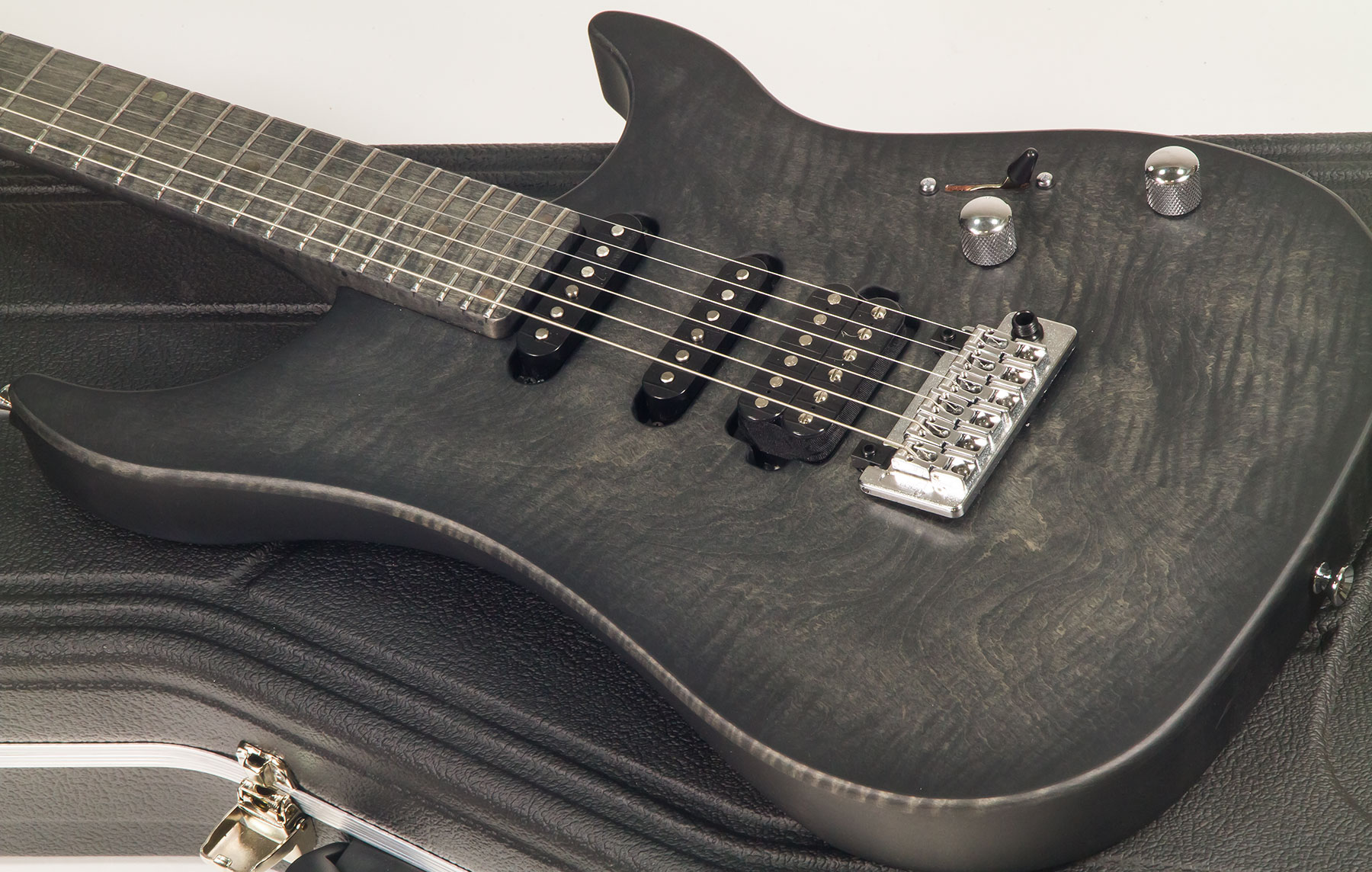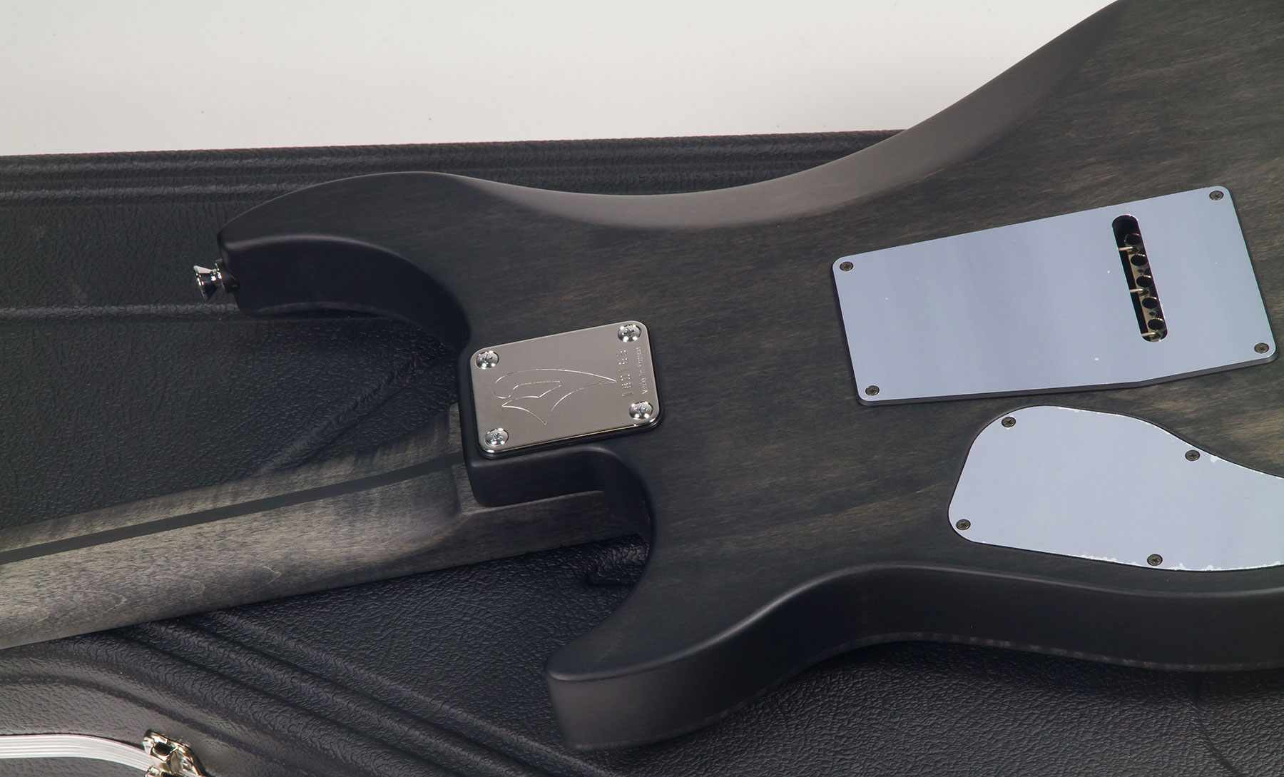 Using a traditional platform (Alder body, figured Maple top, Maple neck, Maple or Rosewood fingerboard, 25,6" scale), it's a versatile instrument thanks to its Dimarzio HSS pickup configuration (Vintage DP415 + Virtual PAF) and 24 frets allowing extended playing range.