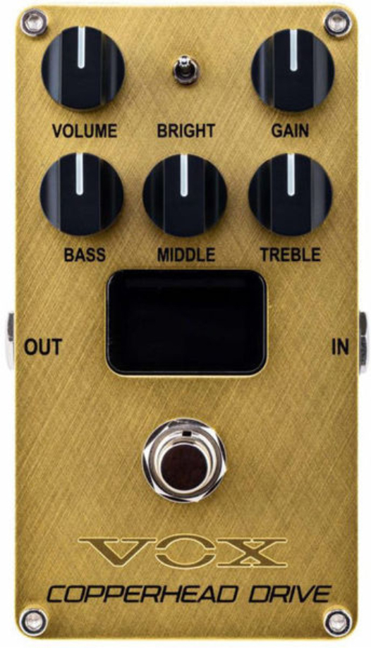 The VOX Valvenergy Copperhead Drive compact effect pedal recreates the classic full stack amp tone, used for the powerful sound of hard rock in the 80s. Use it for lightly overdriven tones or thick distortion.