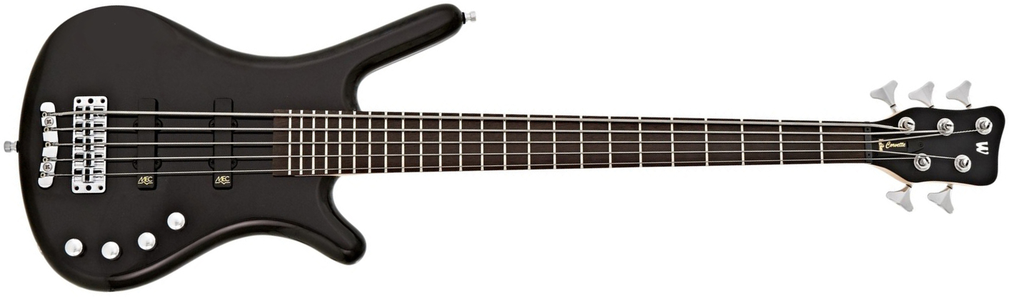 The WARWICK Rockbass Corvette Basic 5 String (Solid Black High Polish) solid body electric bass with active electronics and 24 frets Wenge fingerboard, will please musicians looking for