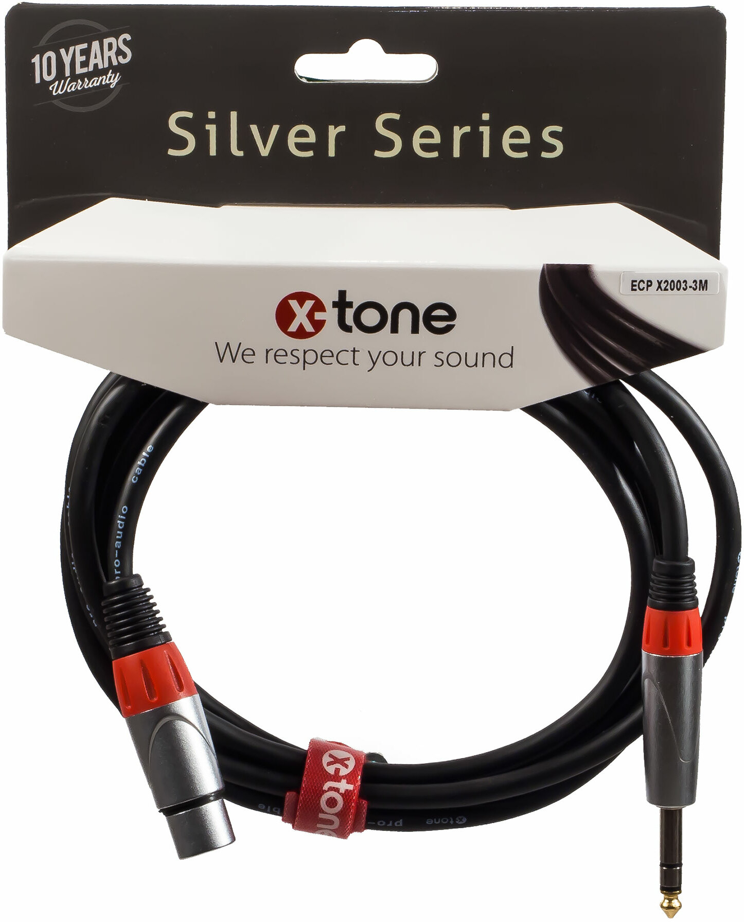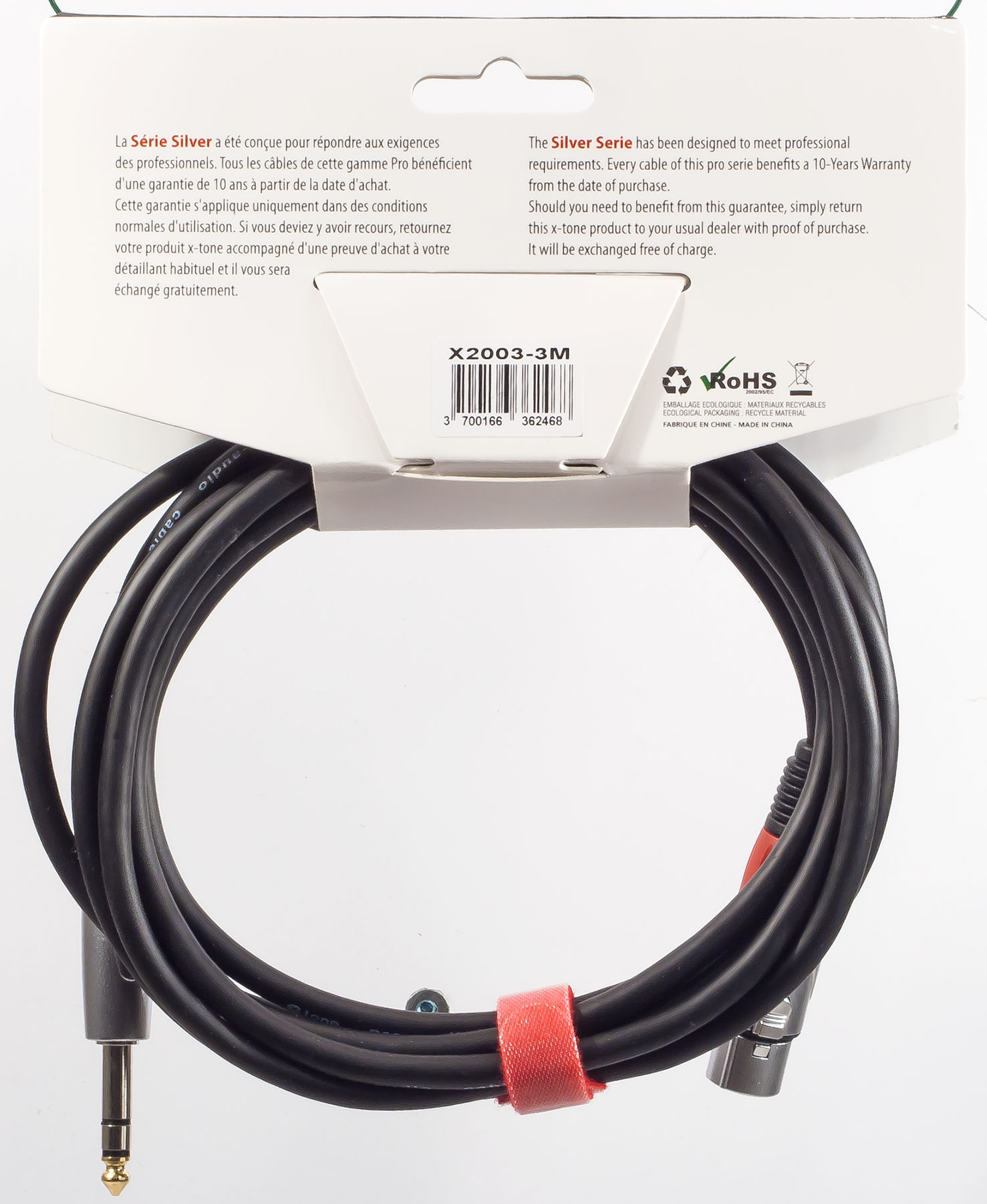 The X-Tone X2003-3M cable with a diameter of 6,5mm and a length of 3 meters is composed of 1 plug Jack 6,35 stereo to 1 female XLR: The use of premium connectors and conductors allows the X-tone brand to offer a 10-year warranty on the Silver Series.