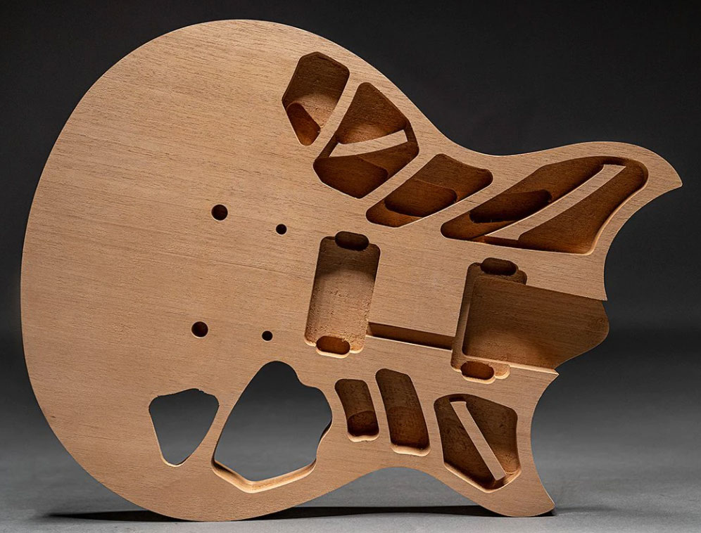- Chambered solid body electric guitar