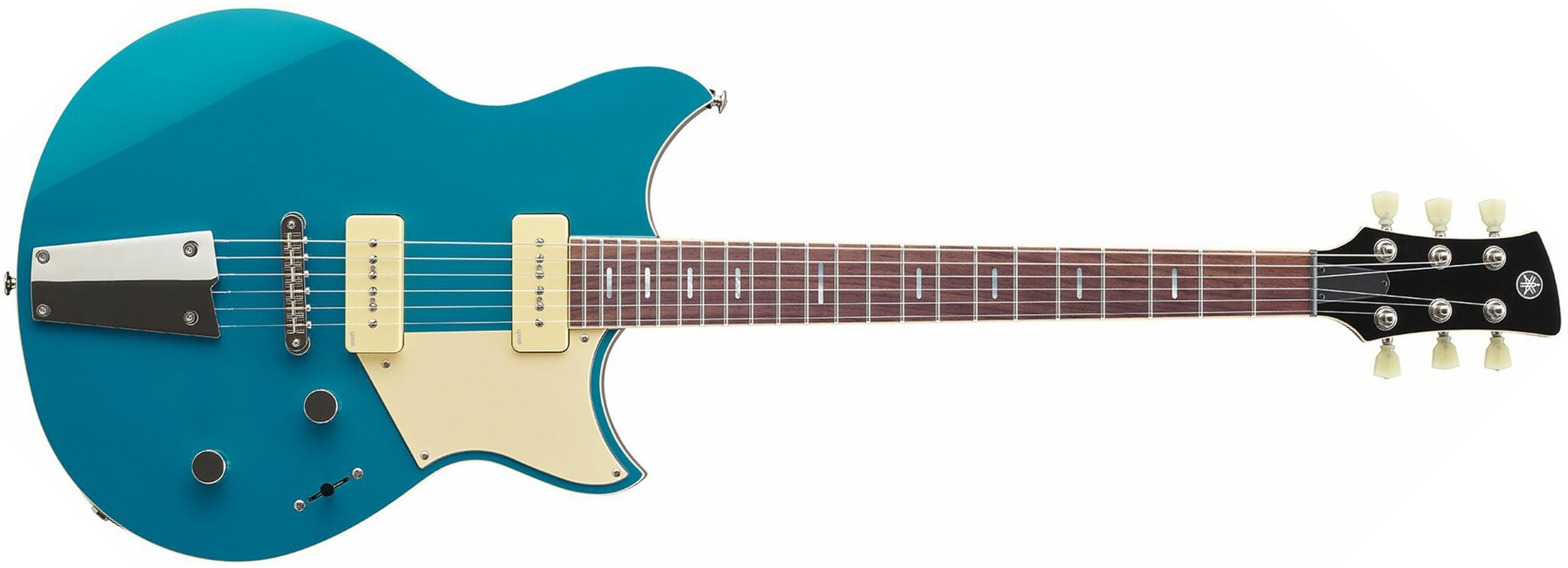 YAMAHA Revstar Standard RSS02T (SWB) is a chambered solid body electric guitar, featuring a Mahogany body, Maple top, a three pieces Mahogany set-neck with 22 stainless steel frets Rosewood fretboard (scale 24.75"), AlNiCo V P90 style single coil pickups and tone pot with push-pull "Focus Switch" which activates a passive boost with an effect similar to overwound pickups — darker highs, increased mids and lows, and an aggressive character.